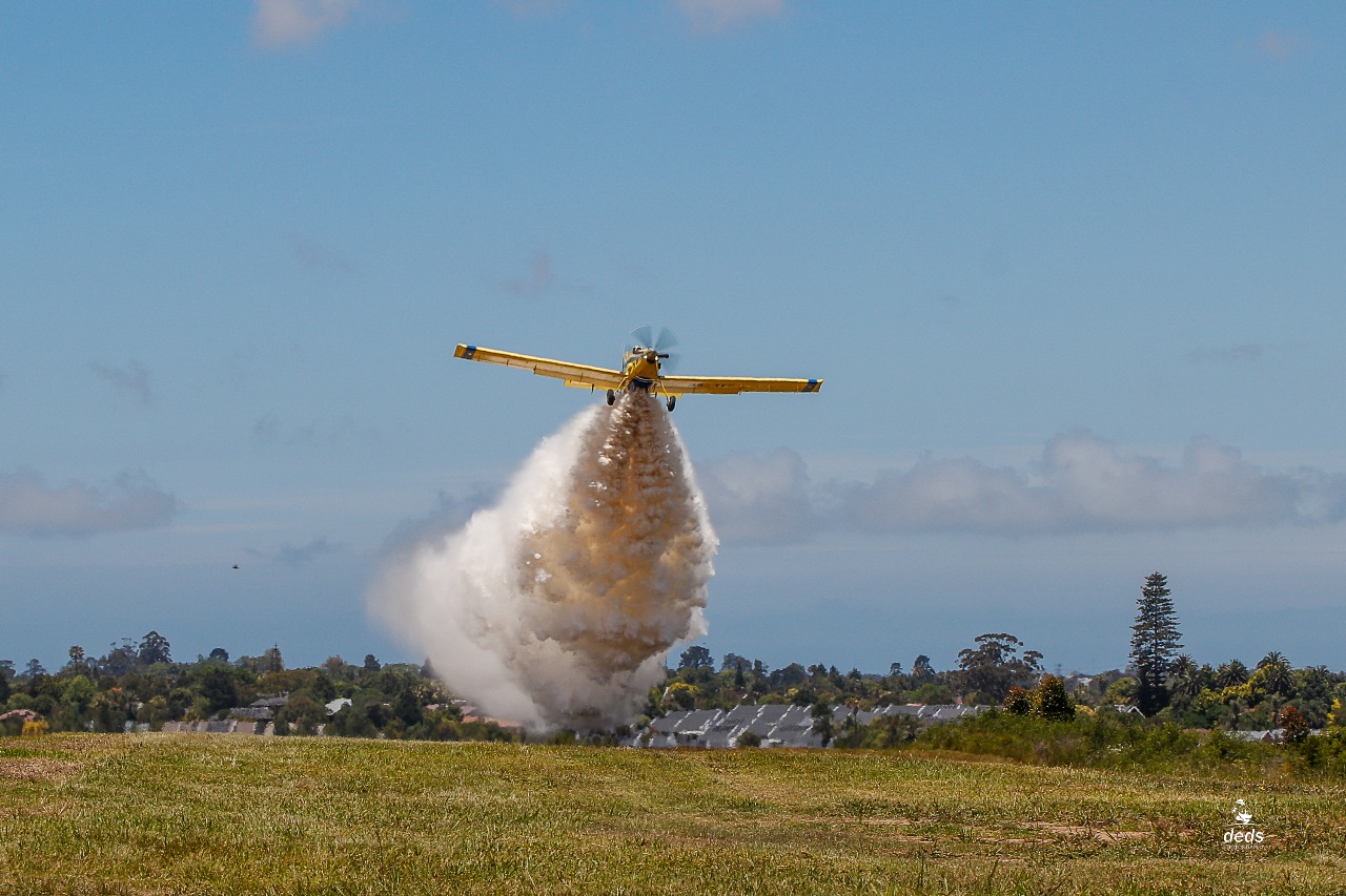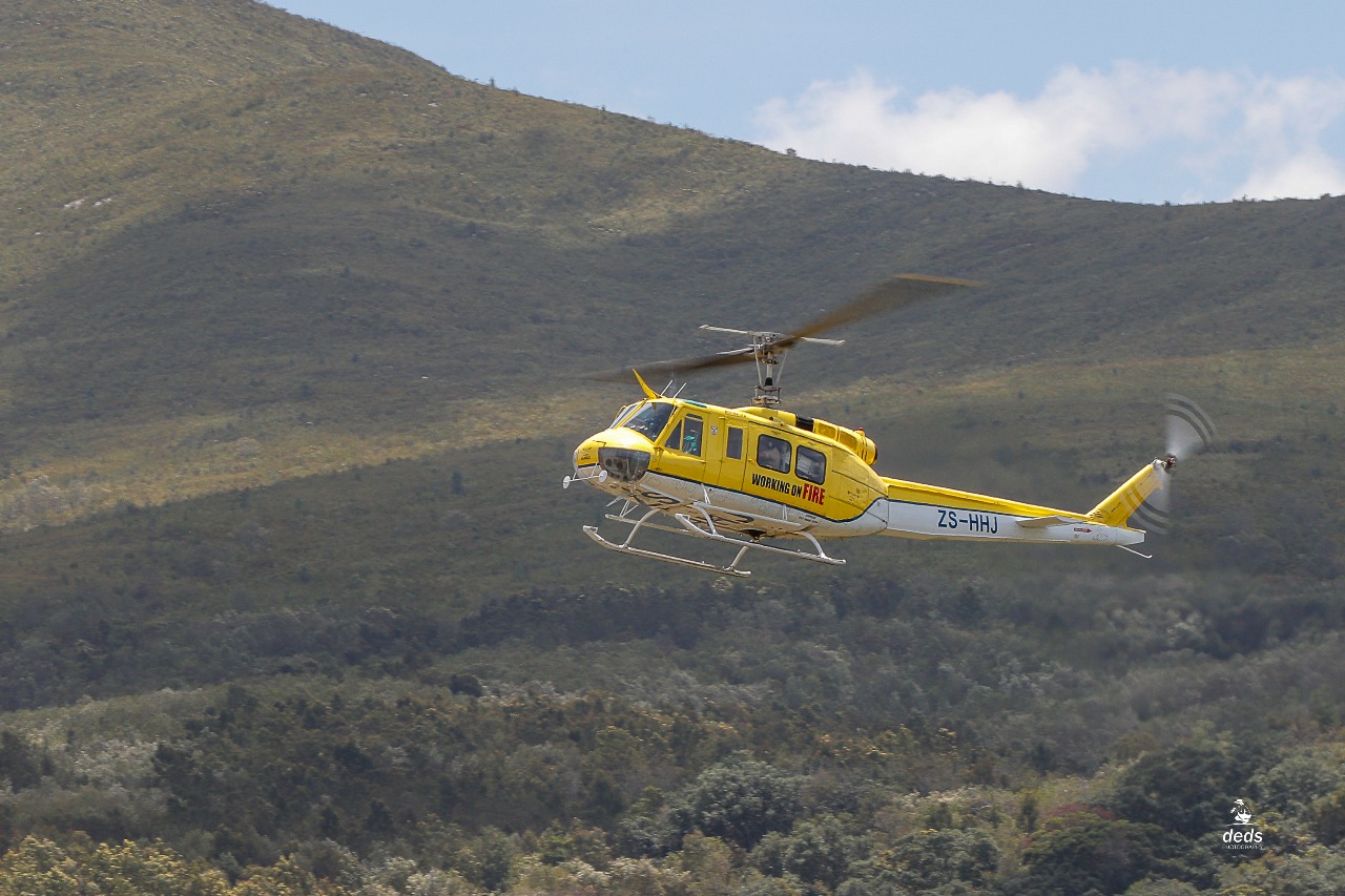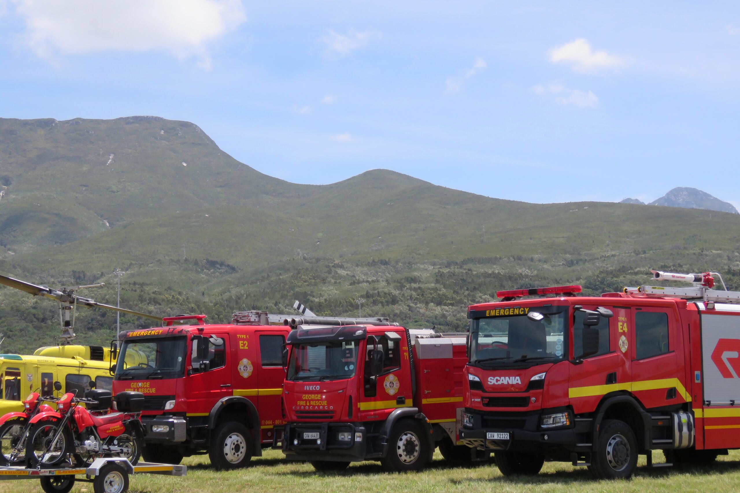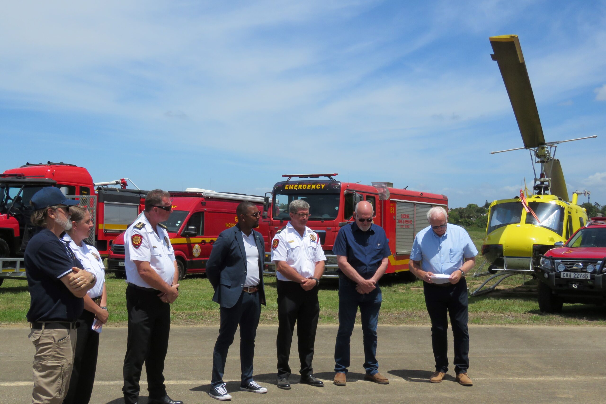 Official Launch: Attending the Fire Season launch from left are Matthew Carter, Kushigu Aviation Chief Pilot, Station Commander Santa Sternsdorff, Chief Fire Officer Neels Barnard, Executive Mayor Ald Browen Johnson, Divisional Commander Johan Brand, Deputy Mayor Ald Gert Van Niekerk and MMC Community Safety and Mobility, Ald Daniel Cronje.