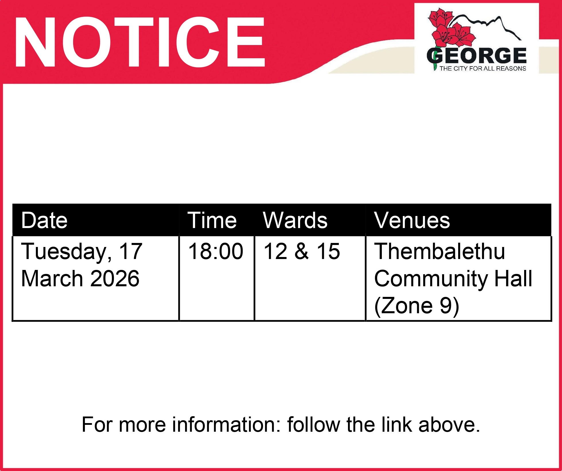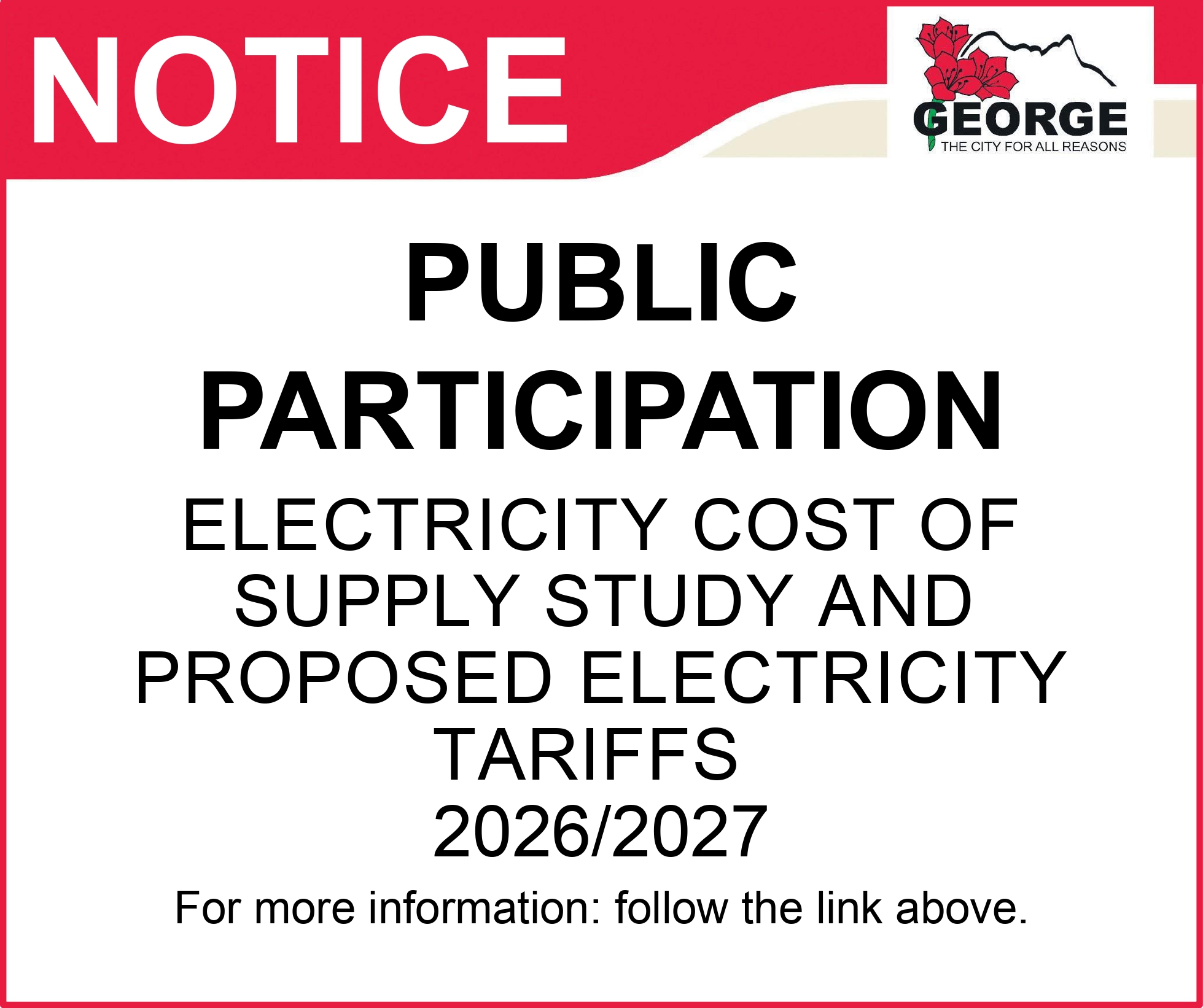 Residents are invited to take part in the upcoming George Municipal Public Participation meetings regarding the Electricity Cost of Supply study and resultant proposed electricity tariff structures for the 2026–2027 financial year.
