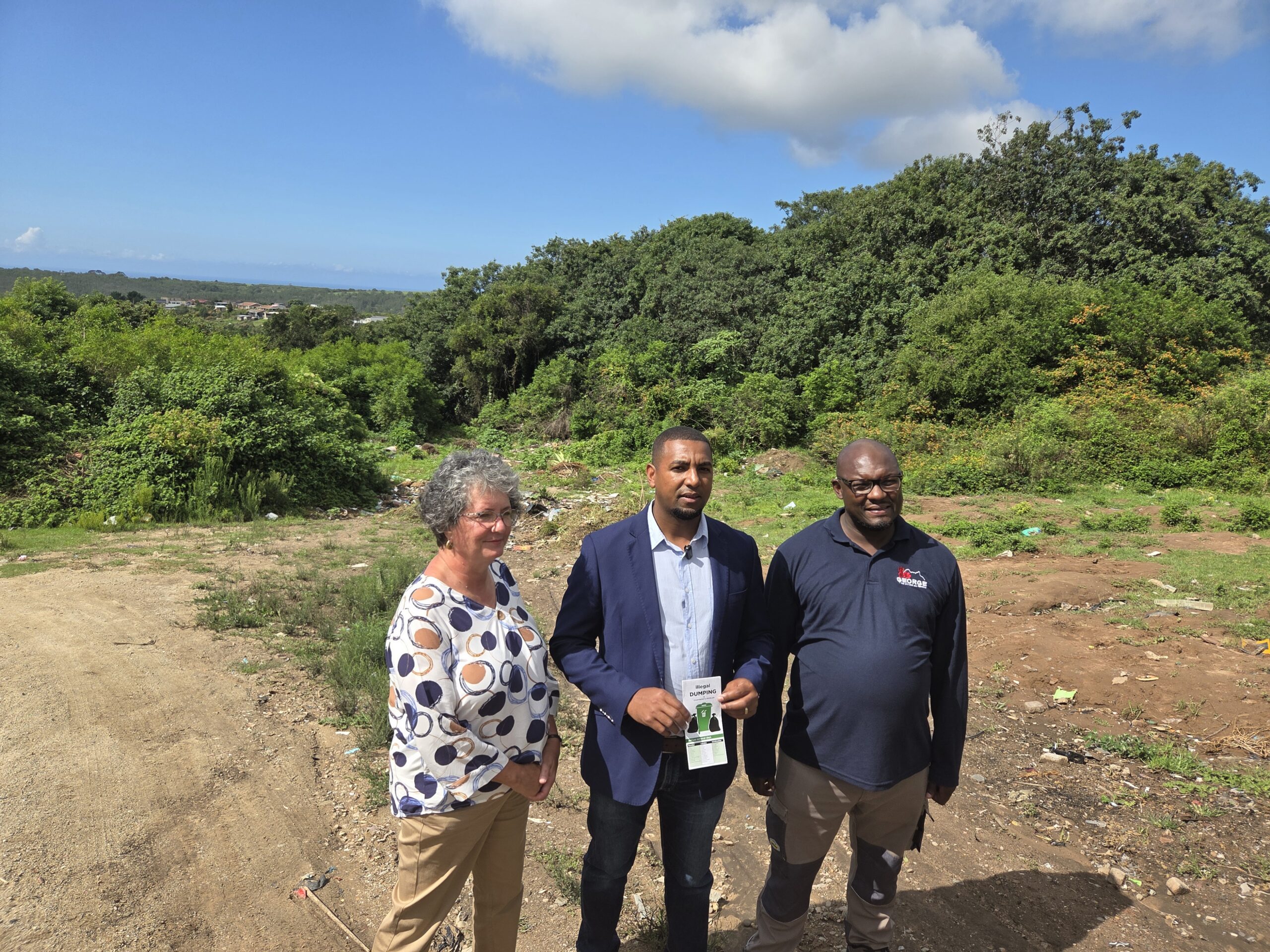 Mayor Browen Johnson, Cllr Erika Brown, MMC for Environmental Services and Sivuyile Mtila, Acting Director: Community Services at a illegal dumping site in Sierrissie Street, New Dawn Park.