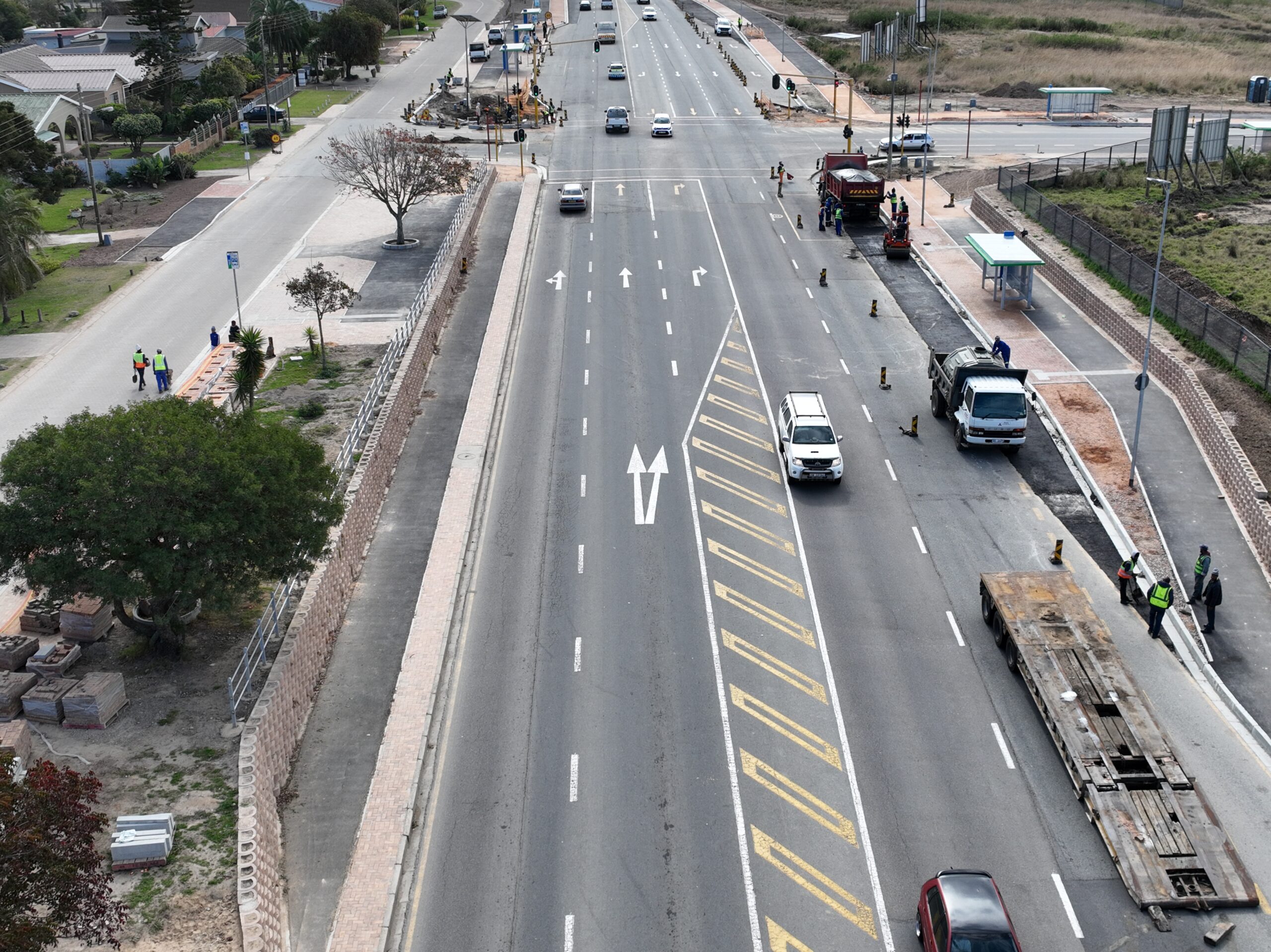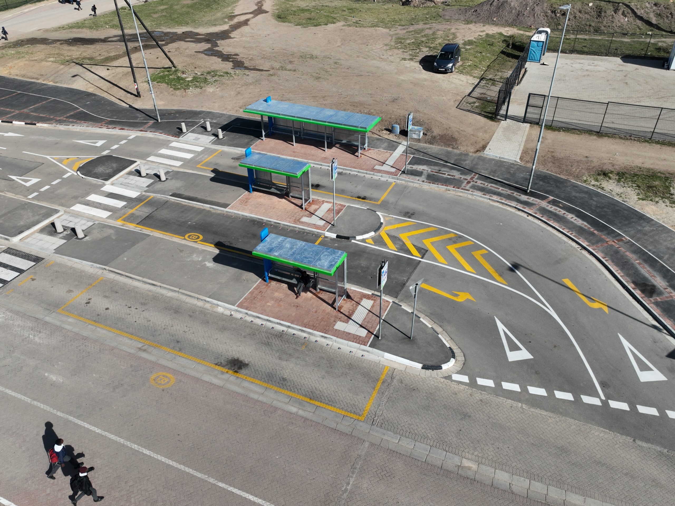 The Jonga terminus in Thembalethu has been upgraded with additional shelters, and the sidewalks have been widened at all four corners of the intersection to enhance pedestrian safety.
