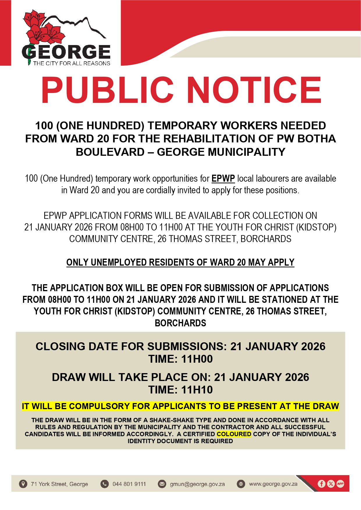 George Municipality apologises for any inconvenience caused.
