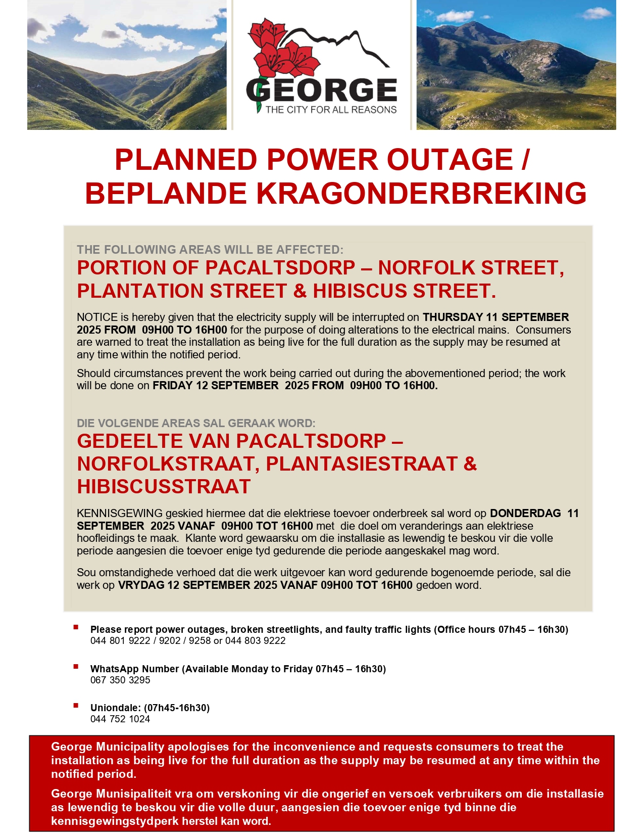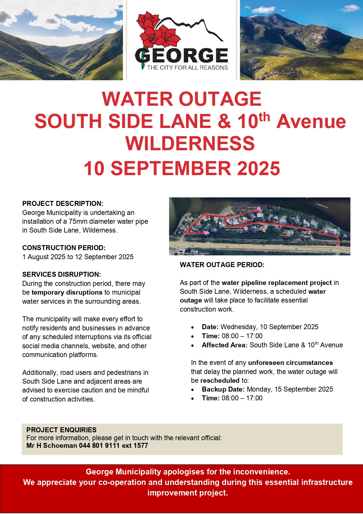 George Munisipaliteit vra omverskoning vir die ongerief en bedank inwoners vir hul geduld.