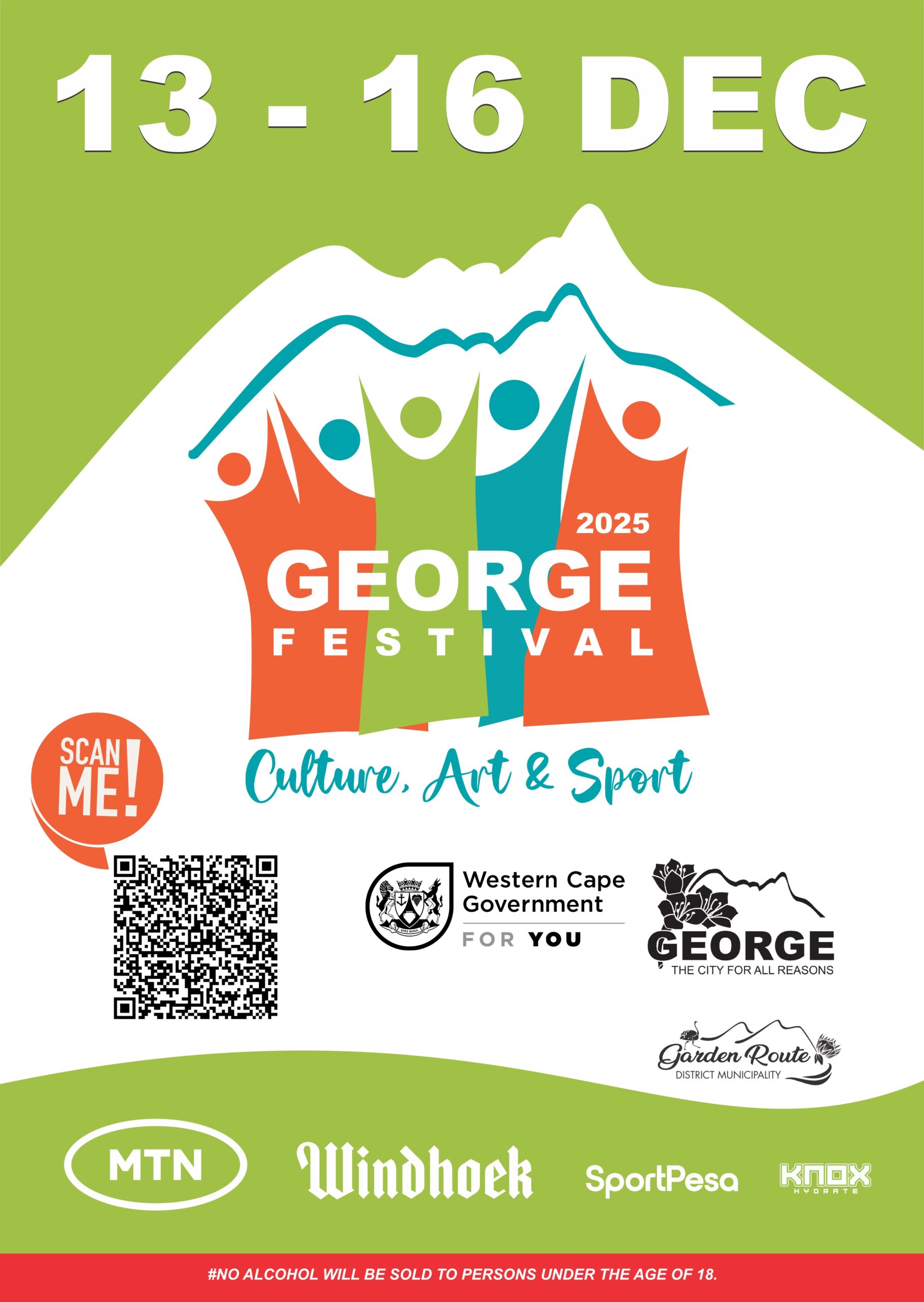 Residents and visitors are encouraged to familiarise themselves with road closures scheduled for 13, 14, and 16 December as they plan their festival routes. The updated festival programme is now available and can be explored here: https://www.george.gov.za/planning-development/local-economic-development/tourism/george-festival-2025-culture-sport-art/