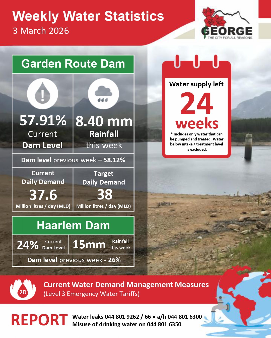 GM Weekly Water Statistics including dam levels and rainfall – 3 March 2026