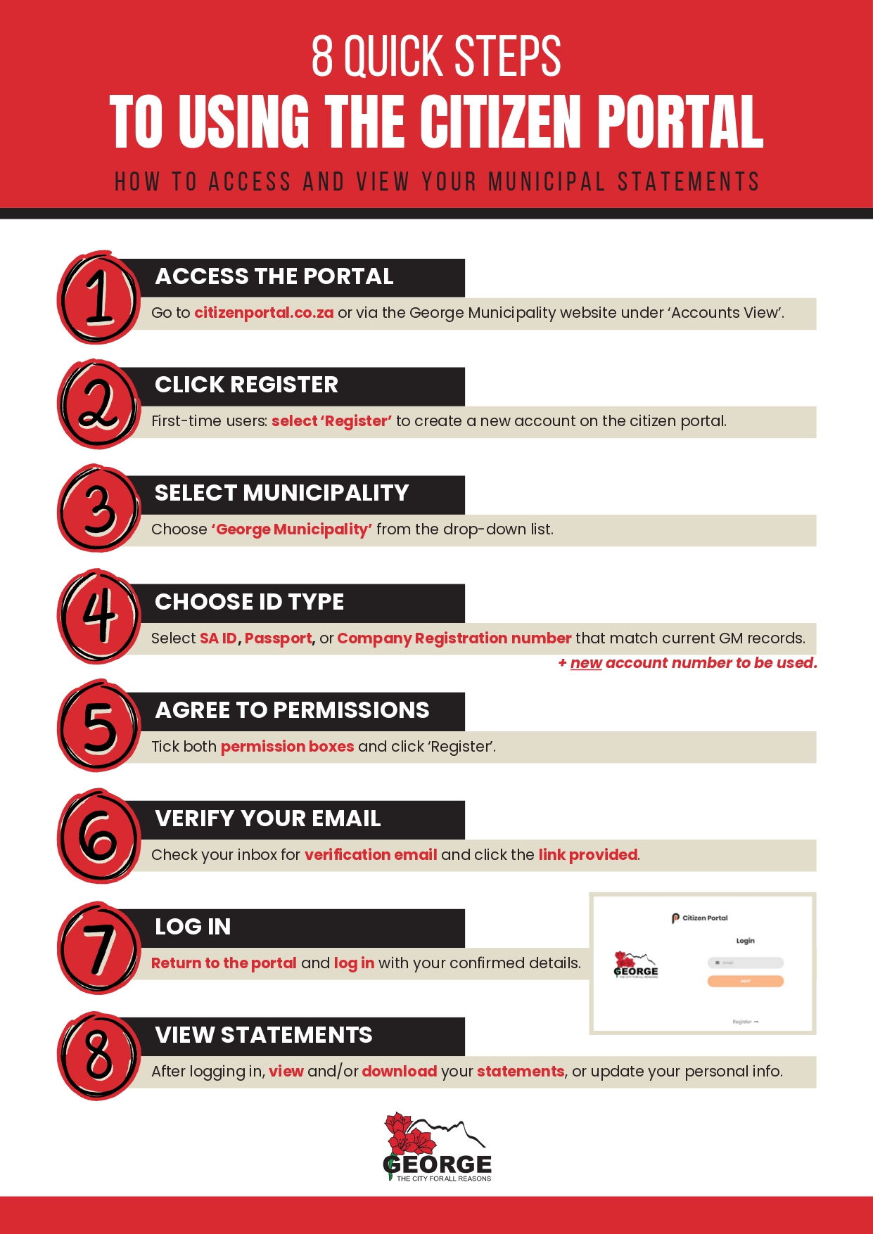 George Municipality has launched the new George Citizen Portal, which allows residents to view, download and print their municipal statements online.