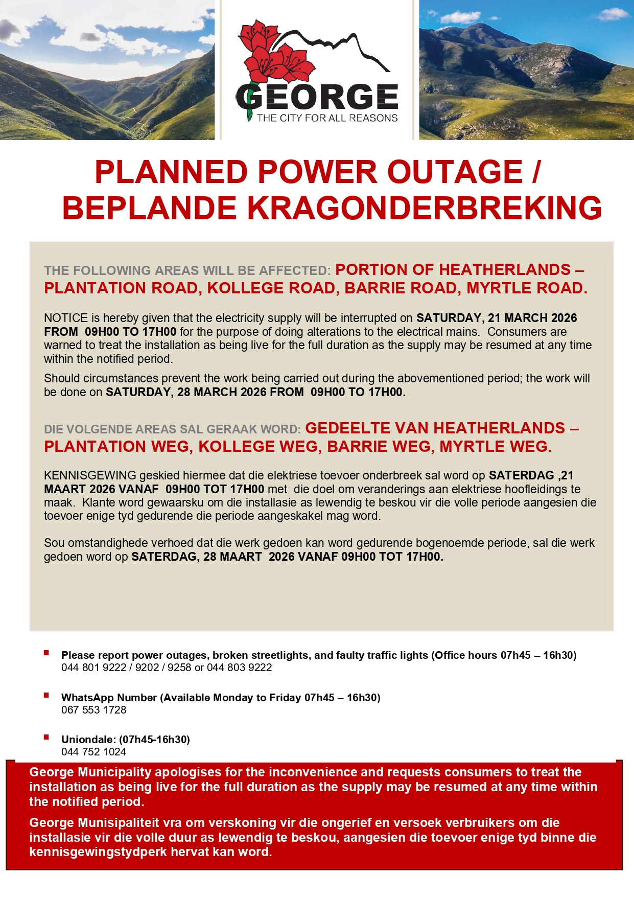 Planned power outage: portion of Heatherlands