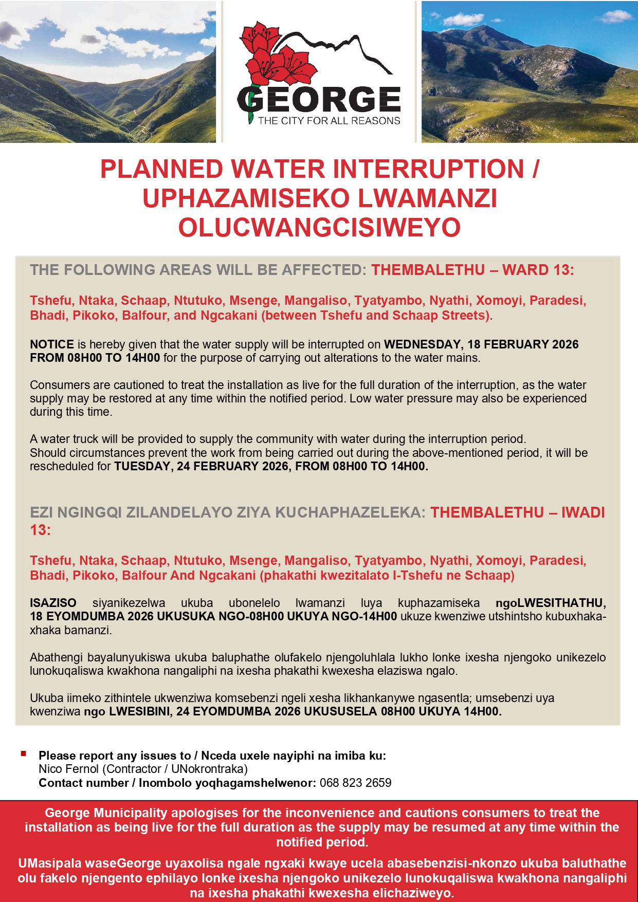 PLANNED WATER INTERRUPTION- THEMBALETHU WARD 13