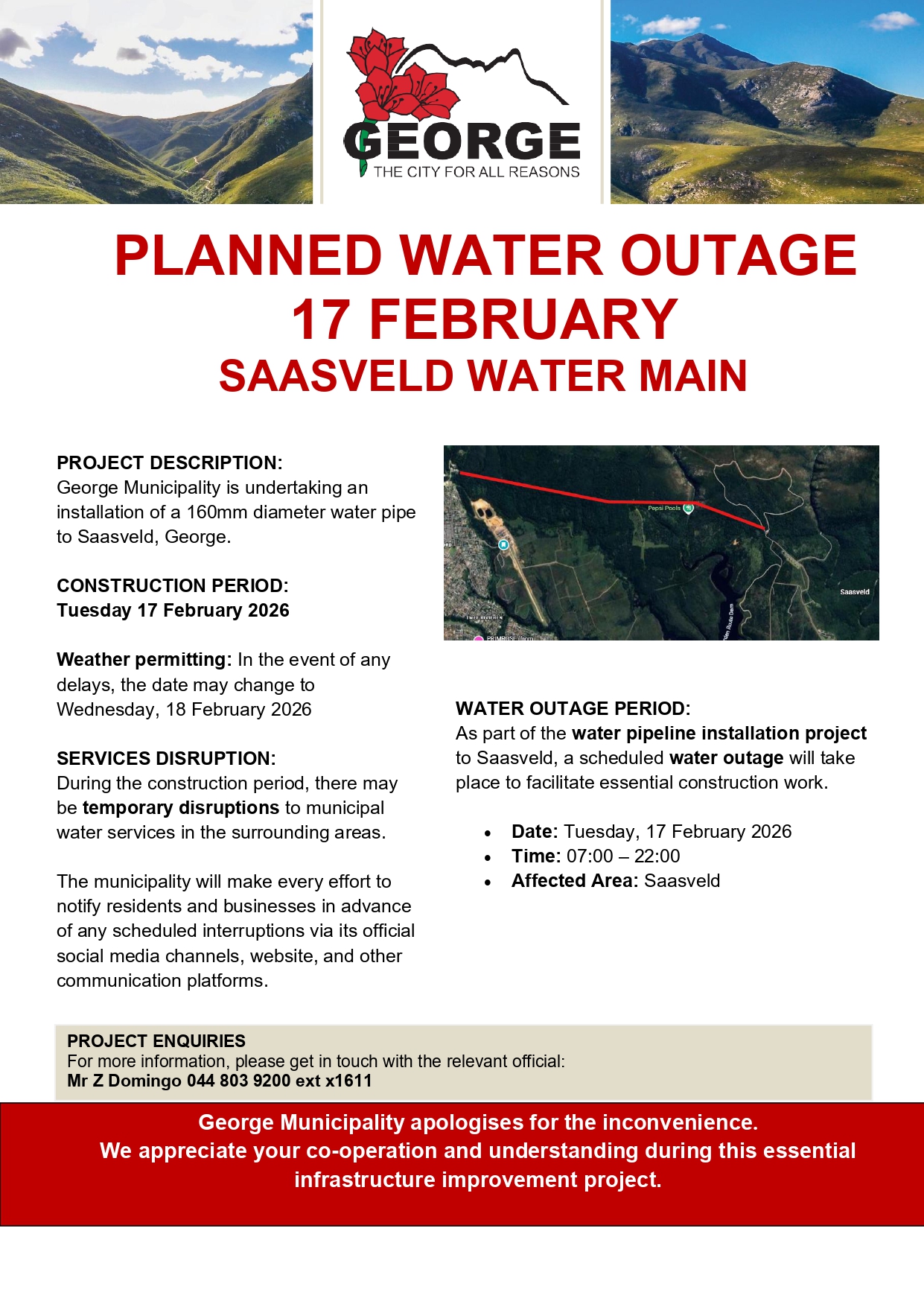 Planned water outage: portion of Saasveld (Nelson Mandela University (NMU) affected ONLY) Home / Notices /