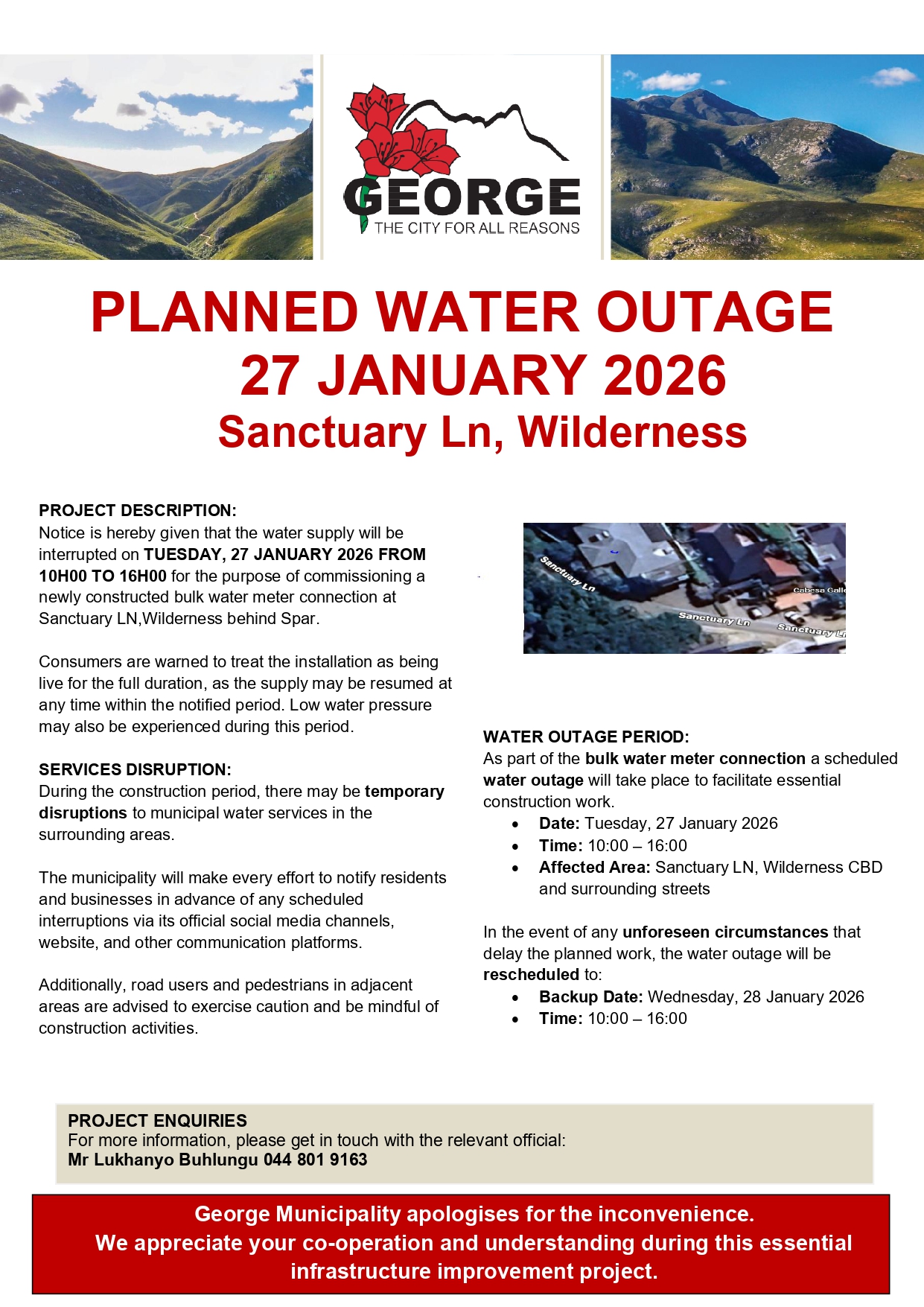 Planned water outage: Sanctuary Ln, Wilderness