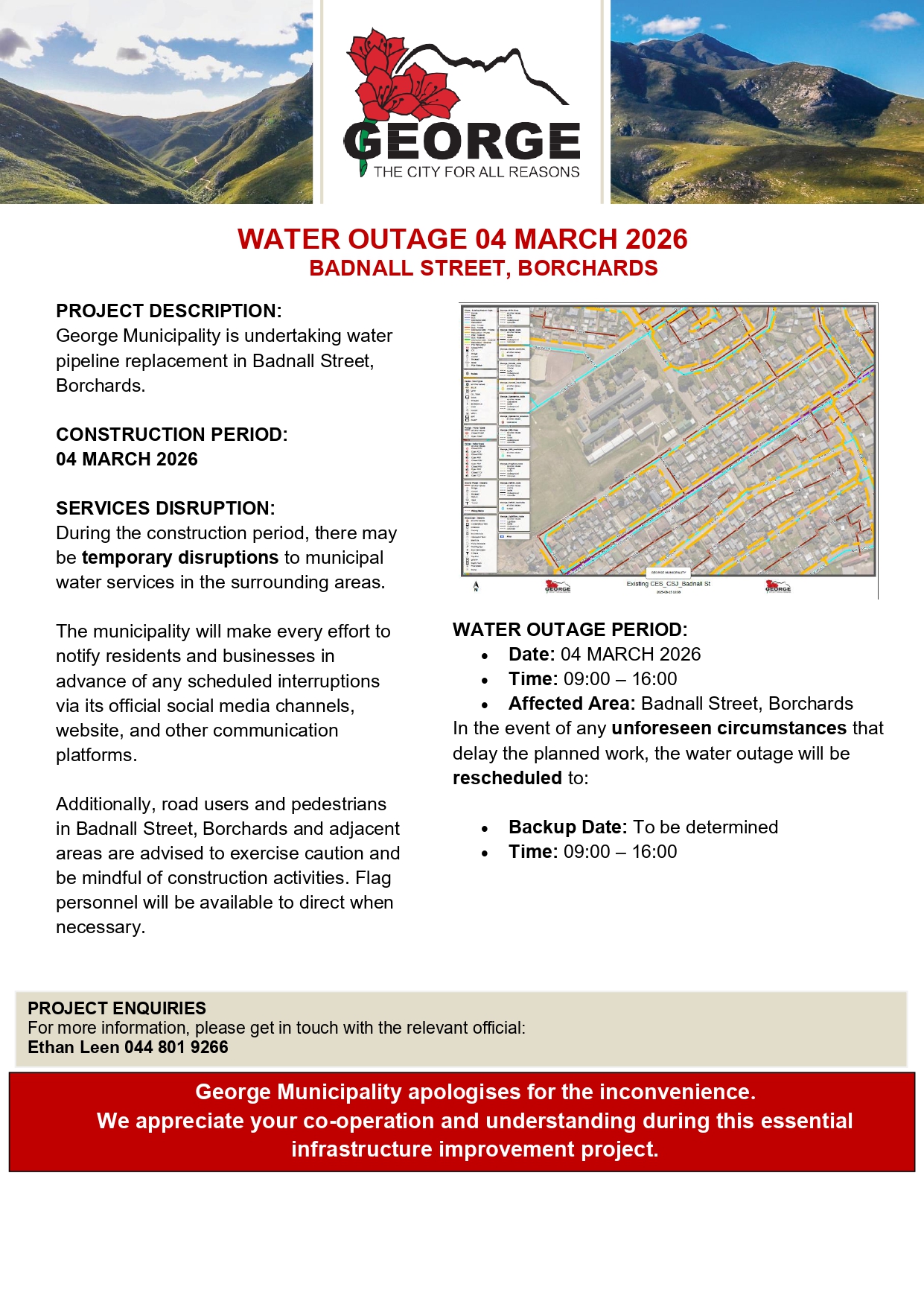 Planned Water Supply Interruption: Badnall Street, Borchards