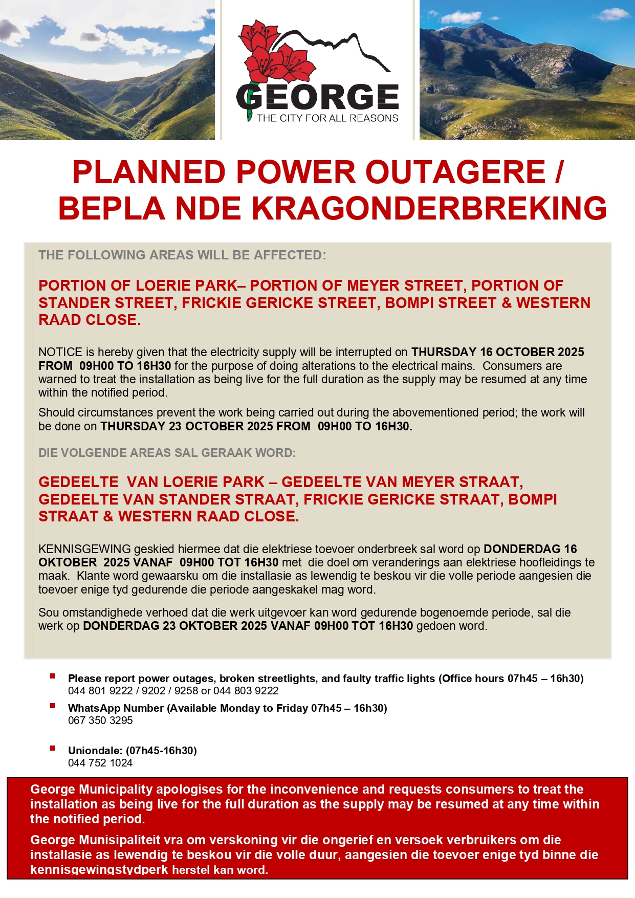 PUBLIC NOTICE: Planned Power Outage in the Portion of Loerie Park