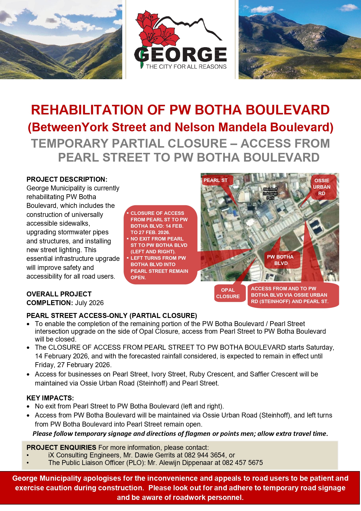 PUBLIC NOTICE UPDATE: REHABILITATION OF PW BOTHA BOULEVARD