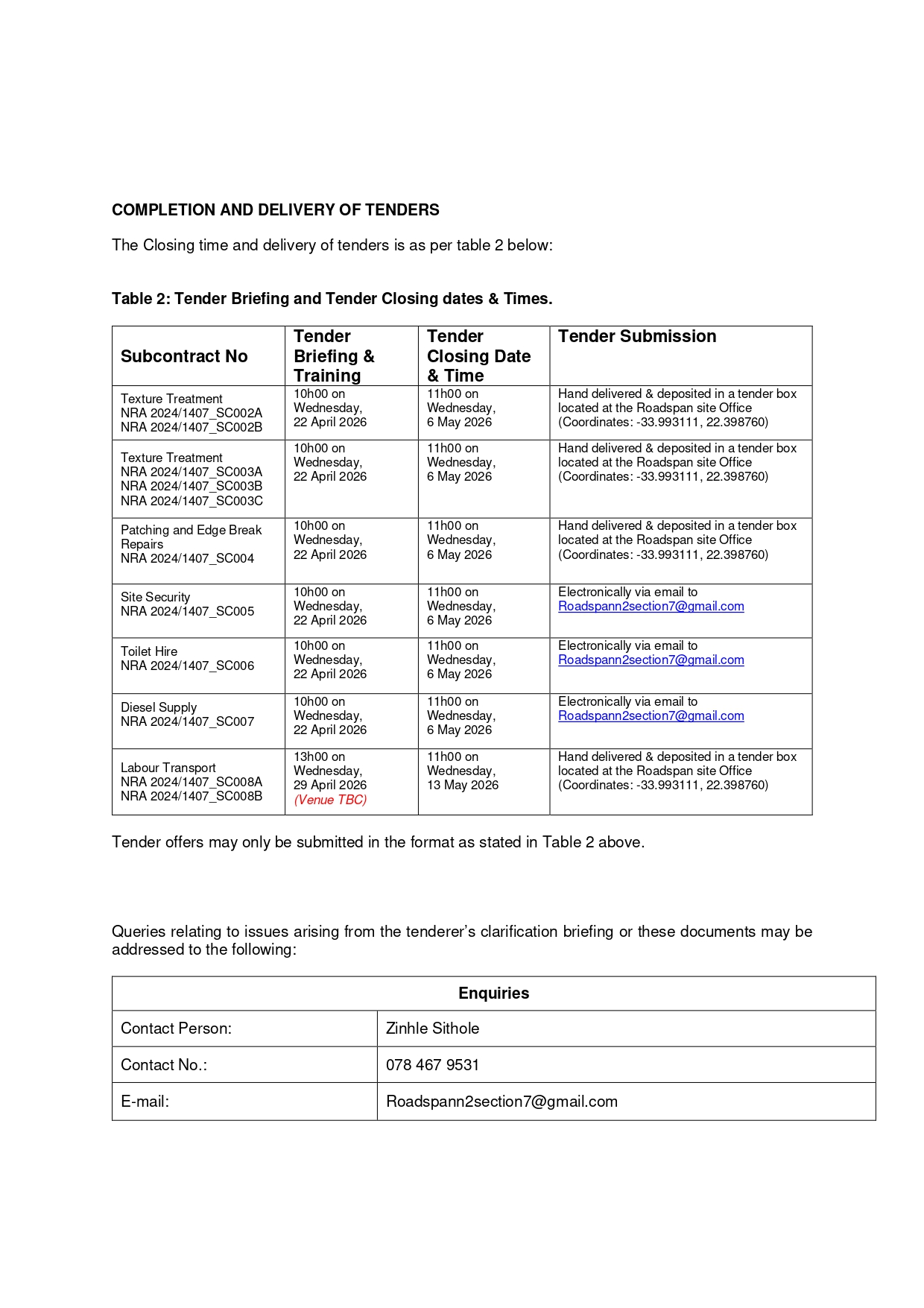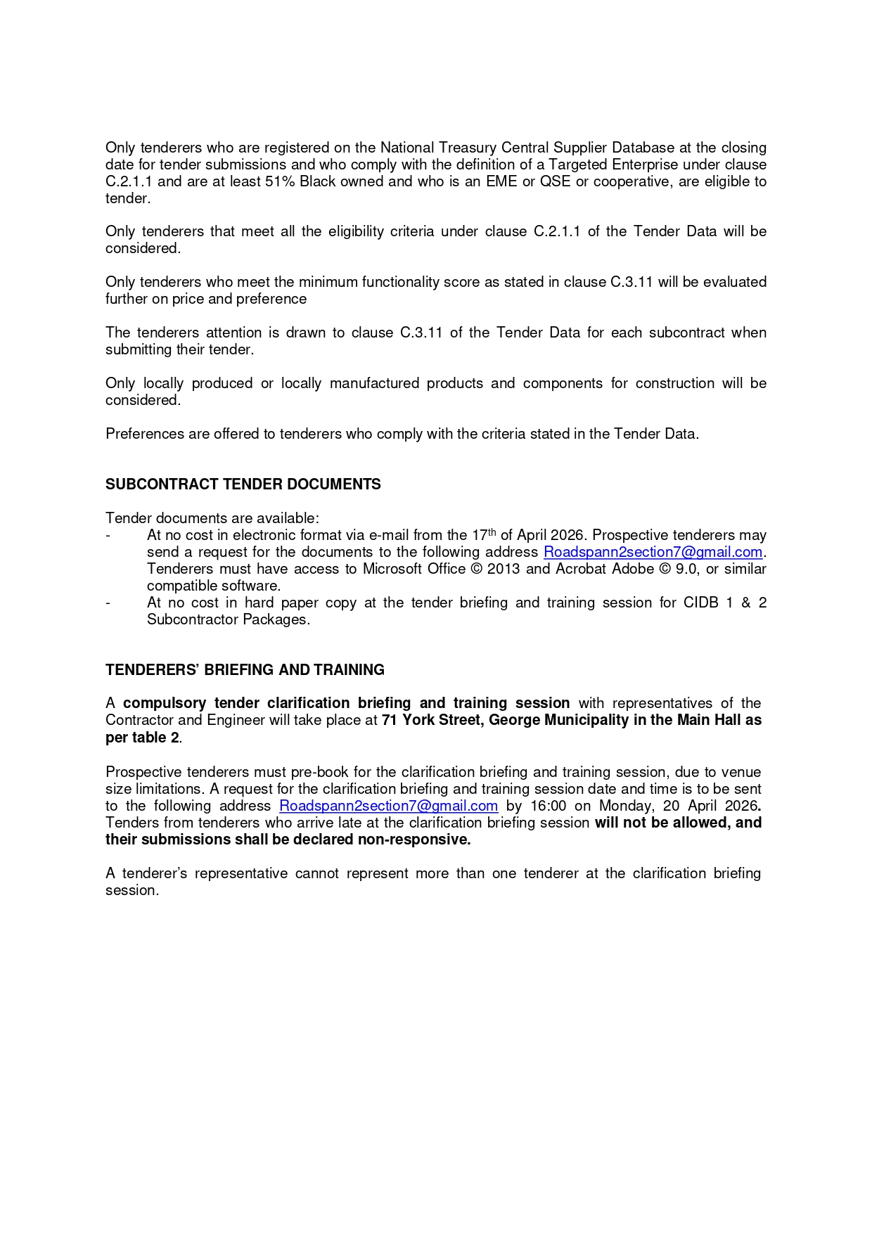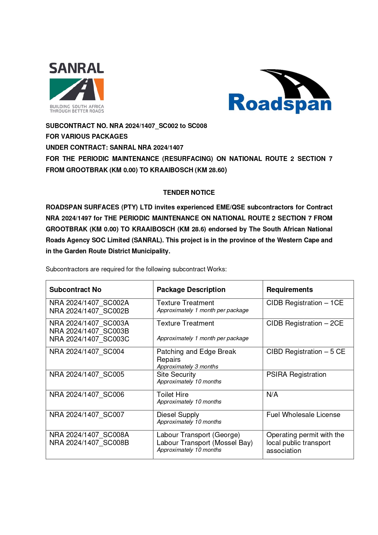 SANRAL subcontracting opportunities (N2 GROOTBRAK TO KRAAIBOSCH)